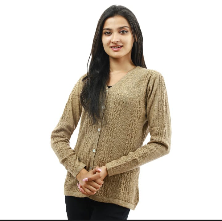 Camel Woolen Cardigan For Ladies With Full sleeves & Front Button Design | Soft,warm & Ideal For winter casual | Formal layering