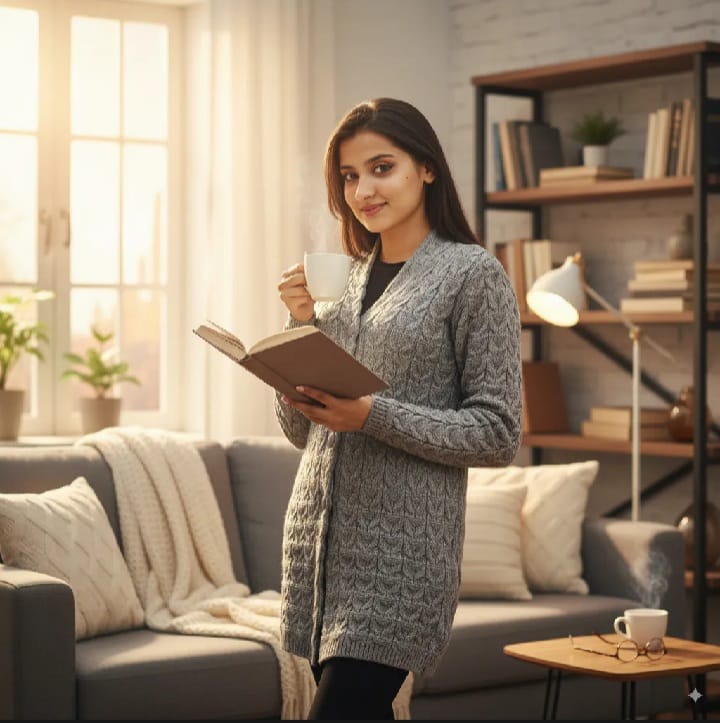 Grey Woolen Full Sleeve Front Button Sweater For Women |Comfortable & Trendy Design