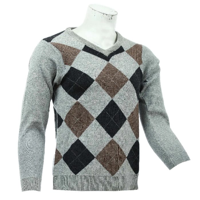 Sweater For Men |Grey woolen full sleeve argyle pattern | Winter and formal wear pullover
