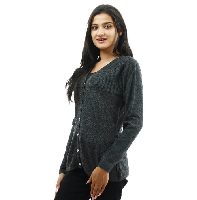 Cardigan For Women | Grey Woolen Full Sleeve full Sleeve Front Button Design | Winter Sweater For Women & Girls
